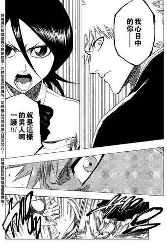 你本來是會因為這種程度的事就心靈受挫的男人嗎?失敗很恐怖嗎?無法保護同伴很恐怖嗎?還是說你體內的虛很恐怖?要是畏懼失敗的話只要變強就好;要是畏懼無法保護同伴的話,只要發誓一定要變強並守護他們就好;要是畏懼體內的虛的話,只要變強到足以擊潰他就好;就算你不相信其他人,只要挺起胸膛,在心中如此吶喊著就好!我心目中的你--就是這樣的男人啊!一護!」--露琪亞(死神196)